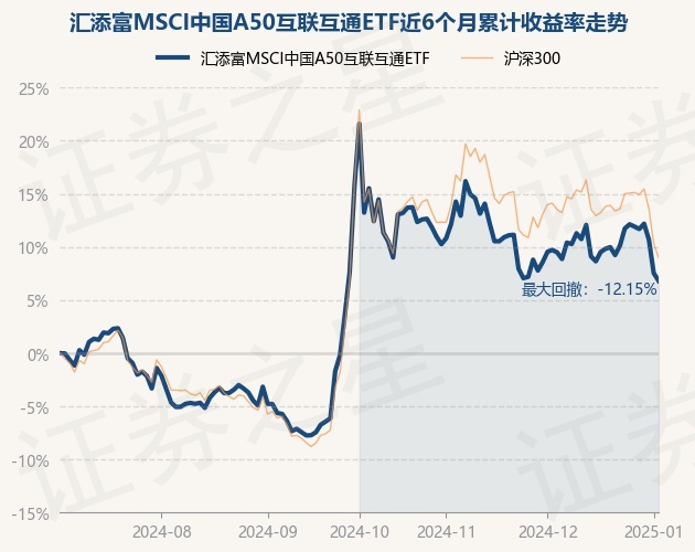 证券之星消息,1月3日,汇添富MSCI中国A50互联互通ETF最新单位净值为0.7979元,累计净值为0.7979元,较前一交易日下跌0.67%。历史数据显示该基金近1个月下跌2.65%,近3个月下跌7.73%,近6个月上涨6.81%,近1年上涨18.7%。该基金近6个月的累计收益率走势如下图: