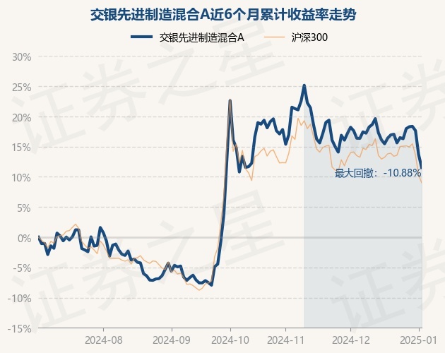证券之星消息,1月3日,交银先进制造混合A最新单位净值为3.5169元,累计净值为4.9679元,较前一交易日下跌1.92%。历史数据显示该基金近1个月下跌5.18%,近3个月下跌1.42%,近6个月上涨11.53%,近1年上涨3.1%。该基金近6个月的累计收益率走势如下图: