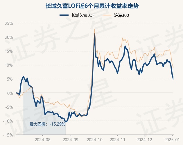 证券之星消息,1月3日,长城久富LOF最新单位净值为1.1217元,累计净值为4.7591元,较前一交易日下跌1.55%。历史数据显示该基金近1个月下跌5.18%,近3个月下跌6.93%,近6个月上涨4.92%,近1年下跌3.45%。该基金近6个月的累计收益率走势如下图: