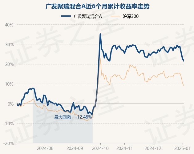 证券之星消息,1月3日,广发聚瑞混合A最新单位净值为3.5564元,累计净值为3.5564元,较前一交易日下跌0.91%。历史数据显示该基金近1个月下跌3.55%,近3个月下跌0.82%,近6个月上涨21.57%,近1年上涨7.21%。该基金近6个月的累计收益率走势如下图: