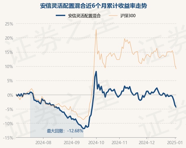 证券之星消息,1月3日,安信灵活配置混合最新单位净值为2.0701元,累计净值为2.6601元,较前一交易日下跌0.74%。历史数据显示该基金近1个月下跌5.57%,近3个月下跌10.06%,近6个月下跌4.4%,近1年上涨2.39%。该基金近6个月的累计收益率走势如下图: