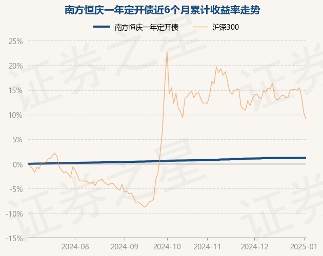 证券之星消息,1月3日,南方恒庆一年定开债最新单位净值为1.0262元,累计净值为1.1089元,较前一交易日上涨0.0%。历史数据显示该基金近1个月上涨0.14%,近3个月上涨0.66%,近6个月上涨1.22%,近1年上涨2.35%。该基金近6个月的累计收益率走势如下图: