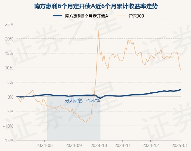 证券之星消息,1月3日,南方惠利6个月定开债A最新单位净值为1.251元,累计净值为1.291元,较前一交易日上涨0.07%。历史数据显示该基金近1个月上涨1.12%,近3个月上涨2.47%,近6个月上涨2.4%,近1年上涨5.27%。该基金近6个月的累计收益率走势如下图: