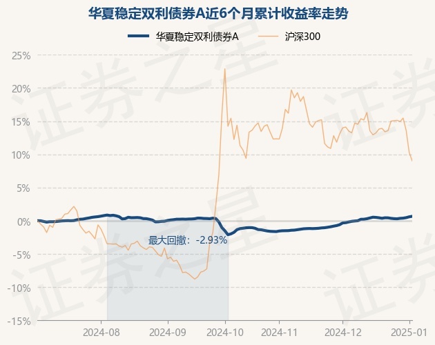 证券之星消息,1月3日,华夏稳定双利债券A最新单位净值为1.0549元,累计净值为1.3226元,较前一交易日上涨0.08%。历史数据显示该基金近1个月上涨0.96%,近3个月上涨1.72%,近6个月上涨0.67%,近1年上涨4.32%。该基金近6个月的累计收益率走势如下图: