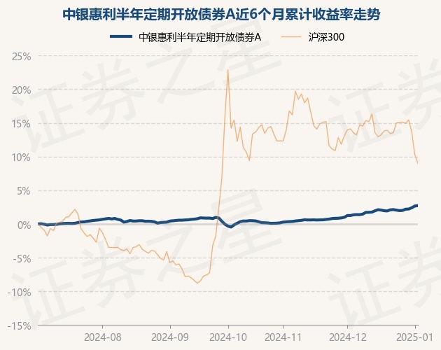 证券之星消息,1月3日,中银惠利半年定期开放债券A最新单位净值为1.1312元,累计净值为1.591元,较前一交易日上涨0.06%。历史数据显示该基金近1个月上涨1.45%,近3个月上涨2.77%,近6个月上涨2.71%,近1年上涨5.4%。该基金近6个月的累计收益率走势如下图: