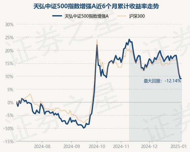 证券之星消息,1月6日,天弘中证500指数增强A最新单位净值为1.1103元,累计净值为1.1103元,较前一交易日下跌0.01%。历史数据显示该基金近1个月下跌6.85%,近3个月下跌4.61%,近6个月上涨9.07%,近1年上涨7.25%。该基金近6个月的累计收益率走势如下图: