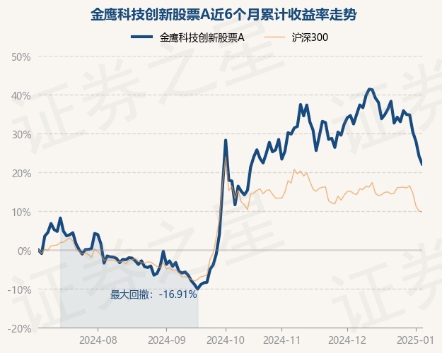 证券之星消息,1月6日,金鹰科技创新股票A最新单位净值为1.3265元,累计净值为1.6625元,较前一交易日下跌1.62%。历史数据显示该基金近1个月下跌11.08%,近3个月上涨5.08%,近6个月上涨22.17%,近1年上涨10.74%。该基金近6个月的累计收益率走势如下图: