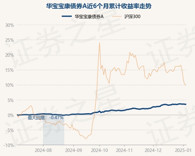 证券之星消息,1月6日,华宝宝康债券A最新单位净值为1.2624元,累计净值为2.4154元,较前一交易日下跌0.02%。历史数据显示该基金近1个月上涨0.69%,近3个月上涨2.55%,近6个月上涨3.49%,近1年上涨4.76%。该基金近6个月的累计收益率走势如下图: