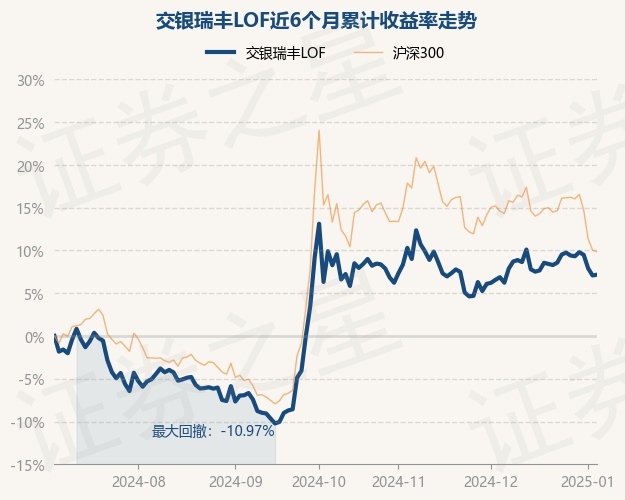 证券之星消息,1月6日,交银瑞丰LOF最新单位净值为1.1066元,累计净值为1.1066元,较前一交易日上涨0.08%。历史数据显示该基金近1个月下跌0.66%,近3个月下跌1.87%,近6个月上涨7.16%,近1年上涨2.86%。该基金近6个月的累计收益率走势如下图: