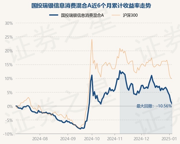 证券之星消息,1月6日,国投瑞银信息消费混合A最新单位净值为0.8006元,累计净值为1.8776元,较前一交易日下跌0.95%。历史数据显示该基金近1个月下跌5.63%,近3个月下跌7.48%,近6个月上涨0.83%,近1年上涨0.58%。该基金近6个月的累计收益率走势如下图: