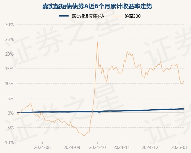 证券之星消息,1月6日,嘉实超短债债券A最新单位净值为1.0562元,累计净值为1.1503元,较前一交易日上涨0.0%。历史数据显示该基金近1个月上涨0.28%,近3个月上涨0.92%,近6个月上涨1.25%,近1年上涨2.72%。该基金近6个月的累计收益率走势如下图: