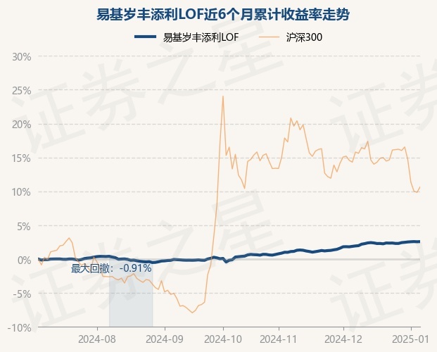 证券之星消息,1月6日,易基岁丰添利LOF最新单位净值为1.6908元,累计净值为2.6018元,较前一交易日下跌0.02%。历史数据显示该基金近1个月上涨0.61%,近3个月上涨2.51%,近6个月上涨2.56%,近1年上涨5.92%。该基金近6个月的累计收益率走势如下图: