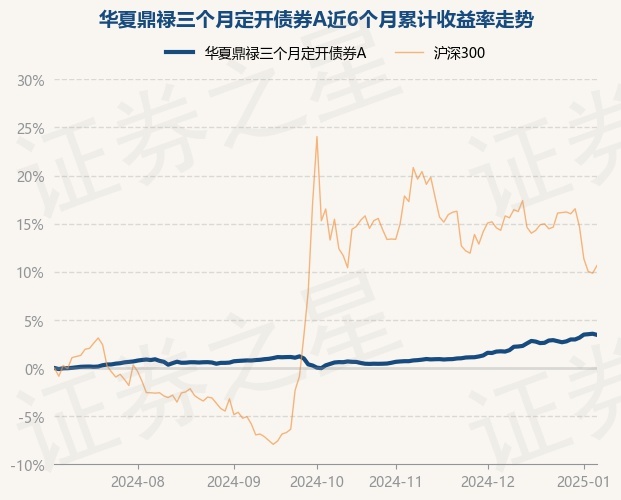 证券之星消息,1月6日,华夏鼎禄三个月定开债券A最新单位净值为1.0423元,累计净值为1.3009元,较前一交易日上涨0.05%。历史数据显示该基金近1个月上涨1.82%,近3个月上涨3.29%,近6个月上涨3.57%,近1年上涨7.08%。该基金近6个月的累计收益率走势如下图: