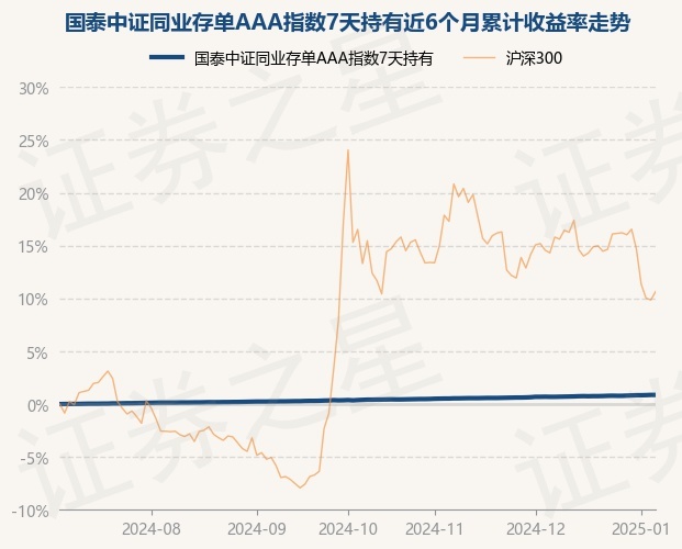 证券之星消息,1月6日,国泰中证同业存单AAA指数7天持有最新单位净值为1.0559元,累计净值为1.0559元,较前一交易日上涨0.02%。历史数据显示该基金近1个月上涨0.18%,近3个月上涨0.5%,近6个月上涨0.87%,近1年上涨1.9%。该基金近6个月的累计收益率走势如下图: