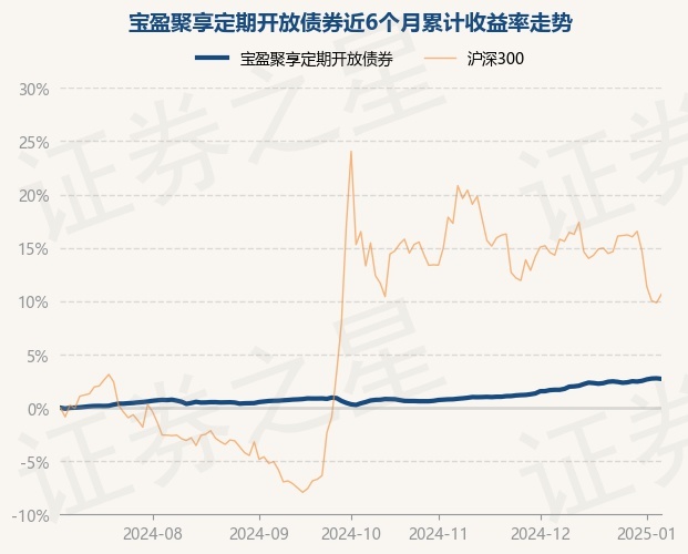 证券之星消息,1月6日,宝盈聚享定期开放债券最新单位净值为1.0447元,累计净值为1.2155元,较前一交易日上涨0.02%。历史数据显示该基金近1个月上涨1.06%,近3个月上涨2.29%,近6个月上涨2.76%,近1年上涨5.67%。该基金近6个月的累计收益率走势如下图:
