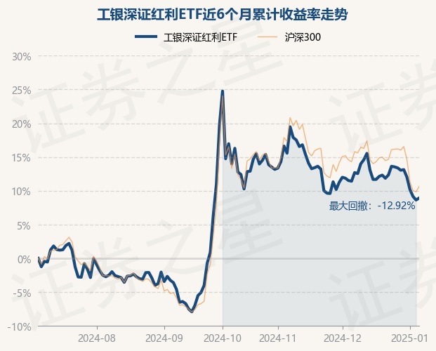 证券之星消息,1月6日,工银深证红利ETF最新单位净值为1.6009元,累计净值为1.9069元,较前一交易日下跌0.48%。历史数据显示该基金近1个月下跌3.61%,近3个月下跌9.29%,近6个月上涨8.41%,近1年上涨10.78%。该基金近6个月的累计收益率走势如下图: