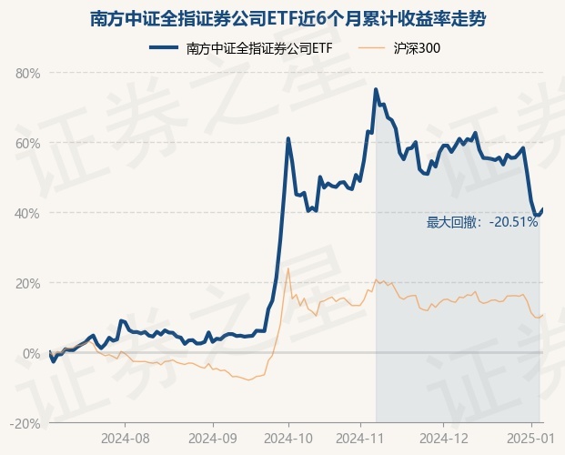 证券之星消息,1月7日,南方中证全指证券公司ETF最新单位净值为1.0751元,累计净值为1.0751元,较前一交易日上涨1.11%。历史数据显示该基金近1个月下跌12.59%,近3个月下跌3.44%,近6个月上涨40.72%,近1年上涨23.33%。该基金近6个月的累计收益率走势如下图: