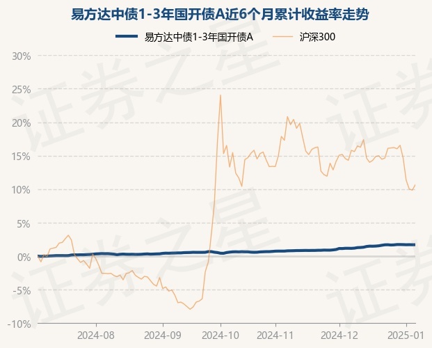 证券之星消息,1月7日,易方达中债1-3年国开债A最新单位净值为1.0175元,累计净值为1.1865元,较前一交易日上涨0.0%。历史数据显示该基金近1个月上涨0.48%,近3个月上涨1.11%,近6个月上涨1.65%,近1年上涨3.8%。该基金近6个月的累计收益率走势如下图: