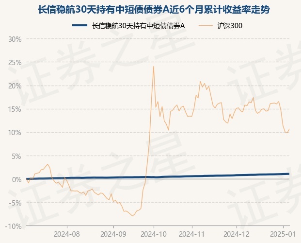 长信稳航30天持有中短债债券A为债券型-中短债基金,根据最新一期基金季报显示,该基金资产配置:无股票类资产,债券占净值比97.61%,现金占净值比1.09%。