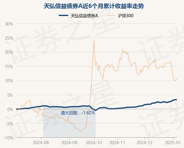 证券之星消息,1月7日,天弘信益债券A最新单位净值为1.0914元,累计净值为1.1862元,较前一交易日上涨0.0%。历史数据显示该基金近1个月上涨1.48%,近3个月上涨3.12%,近6个月上涨3.14%,近1年上涨6.28%。该基金近6个月的累计收益率走势如下图: