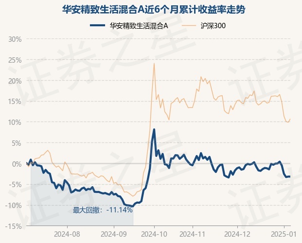 证券之星消息,1月7日,华安精致生活混合A最新单位净值为1.2226元,累计净值为1.2226元,较前一交易日上涨0.0%。历史数据显示该基金近1个月下跌2.43%,近3个月下跌7.73%,近6个月下跌2.86%,近1年上涨8.83%。该基金近6个月的累计收益率走势如下图: