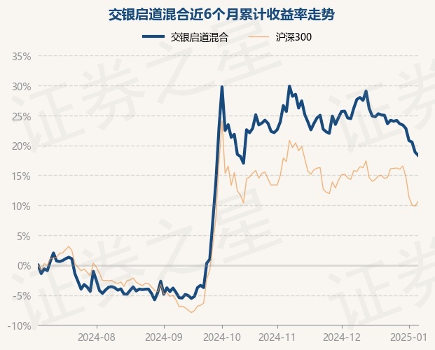 证券之星消息,1月7日,交银启道混合最新单位净值为0.6024元,累计净值为0.6024元,较前一交易日下跌0.45%。历史数据显示该基金近1个月下跌6.26%,近3个月下跌3.69%,近6个月上涨18.33%,近1年上涨17.22%。该基金近6个月的累计收益率走势如下图: