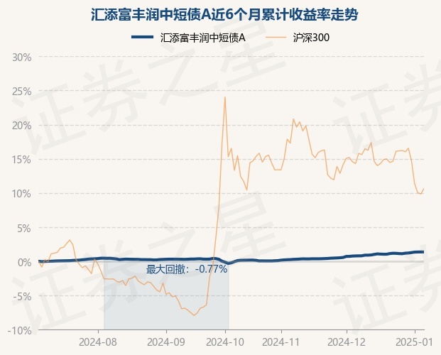 证券之星消息,1月7日,汇添富丰润中短债A最新单位净值为1.0937元,累计净值为1.2067元,较前一交易日下跌0.01%。历史数据显示该基金近1个月上涨0.56%,近3个月上涨1.34%,近6个月上涨1.36%,近1年上涨4.89%。该基金近6个月的累计收益率走势如下图: