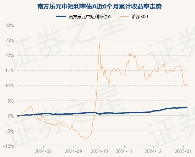 证券之星消息,1月7日,南方乐元中短利率债A最新单位净值为1.0598元,累计净值为1.1448元,较前一交易日上涨0.0%。历史数据显示该基金近1个月上涨1.0%,近3个月上涨1.93%,近6个月上涨2.6%,近1年上涨5.0%。该基金近6个月的累计收益率走势如下图: