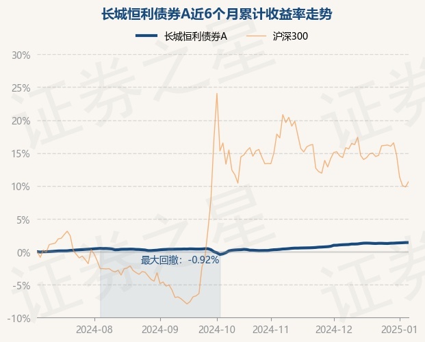 证券之星消息,1月7日,长城恒利债券A最新单位净值为1.0368元,累计净值为1.0906元,较前一交易日上涨0.0%。历史数据显示该基金近1个月上涨0.29%,近3个月上涨1.38%,近6个月上涨1.38%,近1年上涨3.32%。该基金近6个月的累计收益率走势如下图: