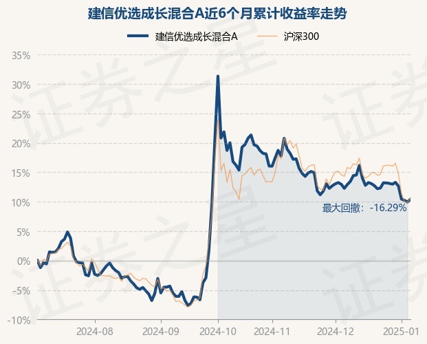 建信优选成长混合A为混合型-偏股基金,根据最新一期基金季报显示,该基金资产配置:股票占净值比89.67%,无债券类资产,现金占净值比10.59%。基金十大重仓股如下: