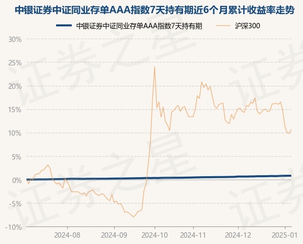 证券之星消息,1月7日,中银证券中证同业存单AAA指数7天持有期最新单位净值为1.0255元,累计净值为1.0255元,较前一交易日上涨0.0%。历史数据显示该基金近1个月上涨0.18%,近3个月上涨0.49%,近6个月上涨0.83%,近1年上涨1.85%。该基金近6个月的累计收益率走势如下图: