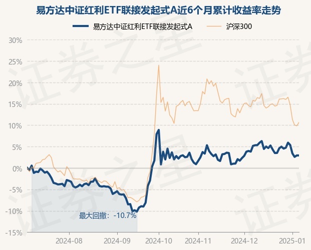 易方达中证红利ETF联接发起式A为指数型-股票基金,根据最新一期基金季报显示,该基金资产配置:无股票类资产,无债券类资产,现金占净值比5.13%。基金十大重仓股如下: