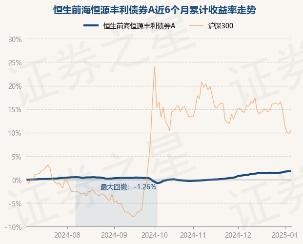证券之星消息,1月7日,恒生前海恒源丰利债券A最新单位净值为1.2632元,累计净值为1.3317元,较前一交易日上涨0.01%。历史数据显示该基金近1个月上涨0.79%,近3个月上涨2.05%,近6个月上涨1.8%,近1年上涨3.66%。该基金近6个月的累计收益率走势如下图: