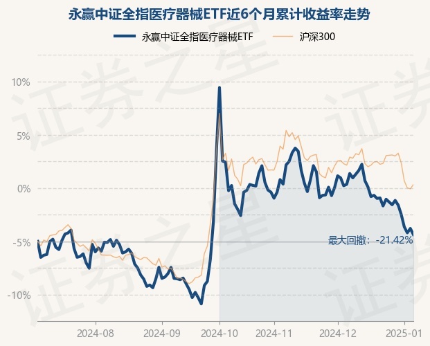 证券之星消息,1月7日,永赢中证全指医疗器械ETF最新单位净值为0.4675元,累计净值为0.4675元,较前一交易日下跌1.12%。历史数据显示该基金近1个月下跌10.17%,近3个月下跌13.44%,近6个月上涨1.28%,近1年下跌14.49%。该基金近6个月的累计收益率走势如下图: