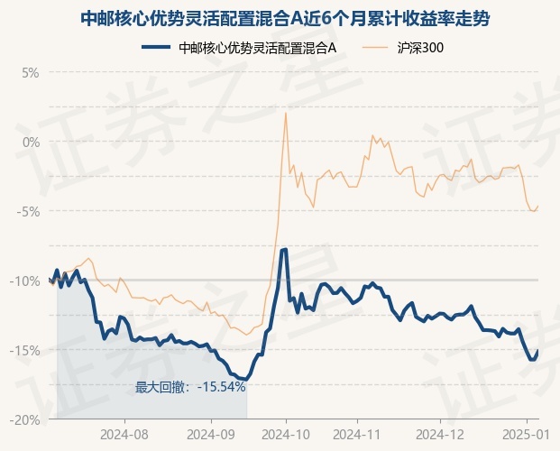 证券之星消息,1月7日,中邮核心优势灵活配置混合A最新单位净值为1.842元,累计净值为3.216元,较前一交易日上涨1.32%。历史数据显示该基金近1个月下跌5.49%,近3个月下跌13.93%,近6个月下跌10.29%,近1年上涨1.58%。该基金近6个月的累计收益率走势如下图: