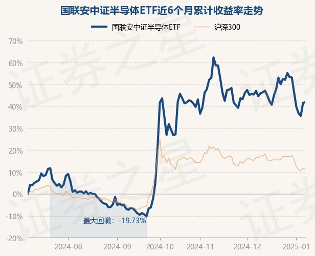 证券之星消息,1月8日,国联安中证半导体ETF最新单位净值为0.977元,累计净值为1.954元,较前一交易日上涨0.17%。历史数据显示该基金近1个月下跌3.54%,近3个月上涨0.07%,近6个月上涨41.82%,近1年上涨34.74%。该基金近6个月的累计收益率走势如下图: