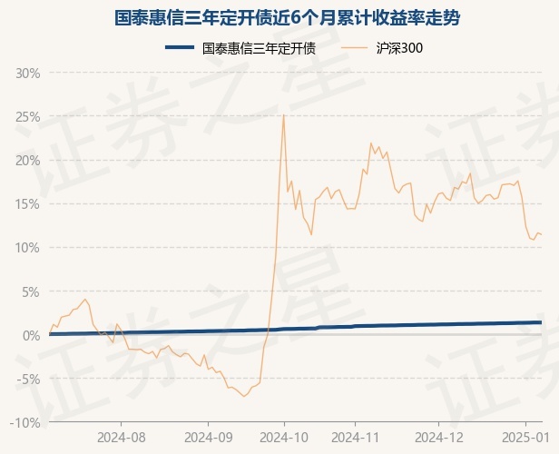 证券之星消息,1月8日,国泰惠信三年定开债最新单位净值为1.004元,累计净值为1.1399元,较前一交易日上涨0.0%。历史数据显示该基金近1个月上涨0.2%,近3个月上涨0.75%,近6个月上涨1.34%,近1年上涨2.45%。该基金近6个月的累计收益率走势如下图: