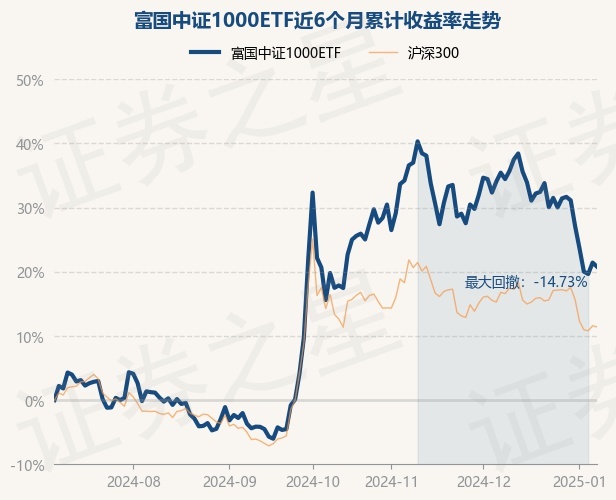 证券之星消息,1月8日,富国中证1000ETF最新单位净值为2.2995元,累计净值为0.8096元,较前一交易日下跌0.52%。历史数据显示该基金近1个月下跌10.81%,近3个月下跌8.72%,近6个月上涨20.8%,近1年上涨3.15%。该基金近6个月的累计收益率走势如下图: