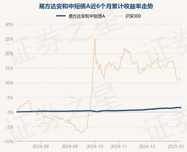 证券之星消息,1月8日,易方达安和中短债A最新单位净值为1.0792元,累计净值为1.1292元,较前一交易日上涨0.0%。历史数据显示该基金近1个月上涨0.54%,近3个月上涨1.28%,近6个月上涨1.47%,近1年上涨3.21%。该基金近6个月的累计收益率走势如下图: