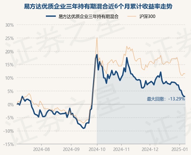 证券之星消息,1月8日,易方达优质企业三年持有期混合最新单位净值为0.8276元,累计净值为0.8276元,较前一交易日上涨0.0%。历史数据显示该基金近1个月下跌6.16%,近3个月下跌13.74%,近6个月上涨2.38%,近1年上涨4.6%。该基金近6个月的累计收益率走势如下图: