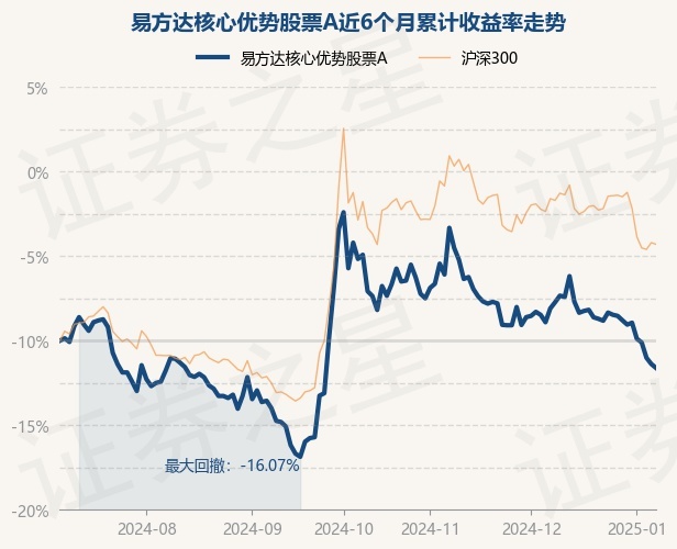 证券之星消息,1月8日,易方达核心优势股票A最新单位净值为0.6468元,累计净值为0.6468元,较前一交易日下跌0.49%。历史数据显示该基金近1个月下跌6.79%,近3个月下跌15.99%,近6个月下跌3.23%,近1年上涨2.24%。该基金近6个月的累计收益率走势如下图: