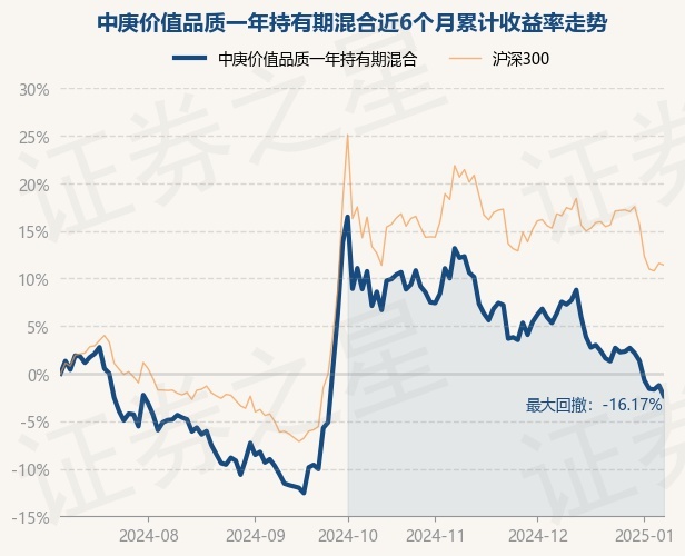 证券之星消息,1月8日,中庚价值品质一年持有期混合最新单位净值为1.3575元,累计净值为1.3575元,较前一交易日下跌1.14%。历史数据显示该基金近1个月下跌8.17%,近3个月下跌16.17%,近6个月下跌2.35%,近1年上涨3.65%。该基金近6个月的累计收益率走势如下图: