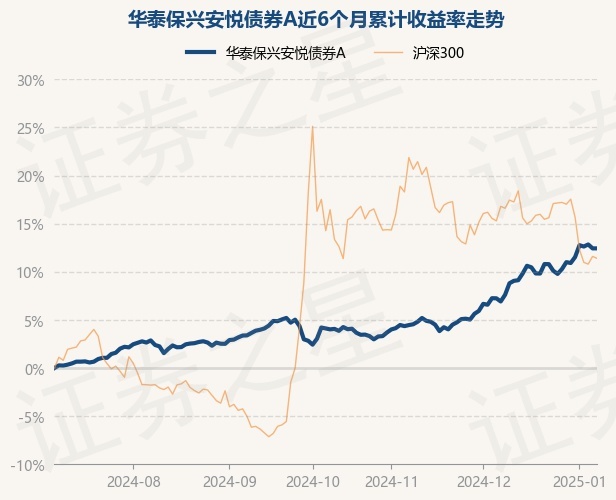 证券之星消息,1月8日,华泰保兴安悦债券A最新单位净值为1.1605元,累计净值为1.3215元,较前一交易日上涨0.0%。历史数据显示该基金近1个月上涨5.02%,近3个月上涨9.62%,近6个月上涨12.28%,近1年上涨18.45%。该基金近6个月的累计收益率走势如下图: