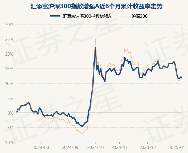 证券之星消息,1月8日,汇添富沪深300指数增强A最新单位净值为1.311元,累计净值为1.5209元,较前一交易日下跌0.19%。历史数据显示该基金近1个月下跌3.25%,近3个月下跌8.4%,近6个月上涨11.9%,近1年上涨16.88%。该基金近6个月的累计收益率走势如下图: