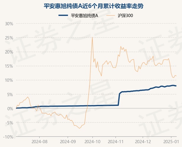 证券之星消息,1月8日,平安惠旭纯债A最新单位净值为1.0759元,累计净值为1.0959元,较前一交易日下跌0.03%。历史数据显示该基金近1个月上涨1.34%,近3个月上涨6.95%,近6个月上涨7.9%,近1年上涨9.17%。该基金近6个月的累计收益率走势如下图: