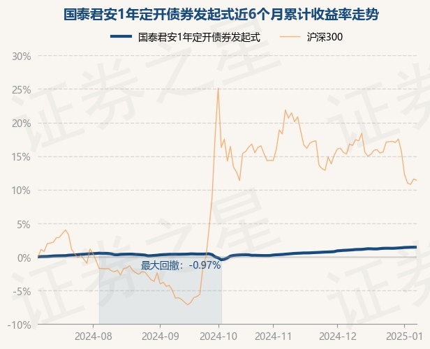 证券之星消息,1月8日,国泰君安1年定开债券发起式最新单位净值为1.0352元,累计净值为1.1246元,较前一交易日上涨0.0%。历史数据显示该基金近1个月上涨0.44%,近3个月上涨1.61%,近6个月上涨1.46%,近1年上涨4.36%。该基金近6个月的累计收益率走势如下图: