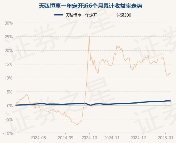 证券之星消息,1月8日,天弘恒享一年定开最新单位净值为1.1431元,累计净值为1.1431元,较前一交易日下跌0.01%。历史数据显示该基金近1个月上涨0.48%,近3个月上涨1.45%,近6个月上涨1.58%,近1年上涨3.75%。该基金近6个月的累计收益率走势如下图: