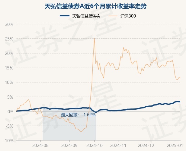 证券之星消息,1月8日,天弘信益债券A最新单位净值为1.0914元,累计净值为1.1862元,较前一交易日上涨0.0%。历史数据显示该基金近1个月上涨1.48%,近3个月上涨3.35%,近6个月上涨3.23%,近1年上涨6.25%。该基金近6个月的累计收益率走势如下图: