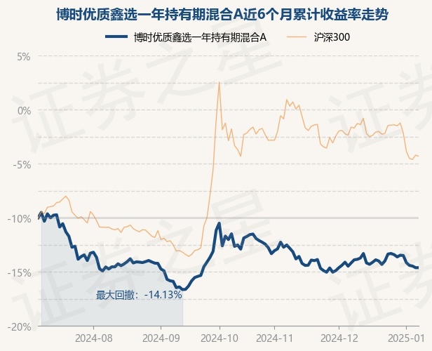 证券之星消息,1月8日,博时优质鑫选一年持有期混合A最新单位净值为0.7651元,累计净值为0.7651元,较前一交易日上涨0.0%。历史数据显示该基金近1个月下跌0.42%,近3个月下跌7.81%,近6个月下跌8.72%,近1年上涨7.87%。该基金近6个月的累计收益率走势如下图: