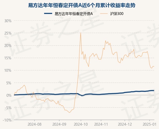 证券之星消息,1月8日,易方达年年恒春定开债A最新单位净值为1.0191元,累计净值为1.1528元,较前一交易日上涨0.0%。历史数据显示该基金近1个月上涨0.61%,近3个月上涨1.81%,近6个月上涨1.76%,近1年上涨5.12%。该基金近6个月的累计收益率走势如下图: